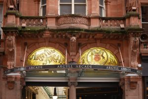 Heading west along Argyle Street, The Argyll Arcade is discreetly tucked away, linking Argyll Street and Buchanan Street. It was built in 1827 and is one of Europe’s oldest shopping arcades, not to mention Scotland’s first. Designed by John Baird (1798-1859) the space is Parisian in style and is Grade A listed. The project was the brainchild of a John Reid who turned his then family home on Buchanan Street over for the development. Rumour has it that the two shops at the entrance were formed from the front rooms of his house! The arcade has always been associated with selling luxury goods and today hosts a huge selection of jeweller’s stores. Many of us will remember pressing our face up on the shop windows as our mums dragged us in for a nosy at the diamonds whilst we waited for the rain to stop!