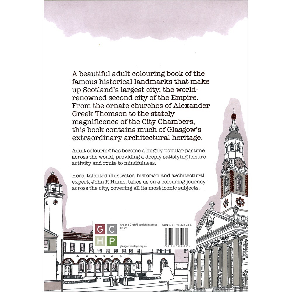 Colouring Glasgow is a beautiful adult colouring book of the famous historic landmarks that make up Scotland’s largest city, the world-renowned second city of the Empire. From the ornate churches of Alexander Greek Thomson to the stately magnificence of the City Chambers, this book contains much of Glasgow’s extraordinary architectural heritage.