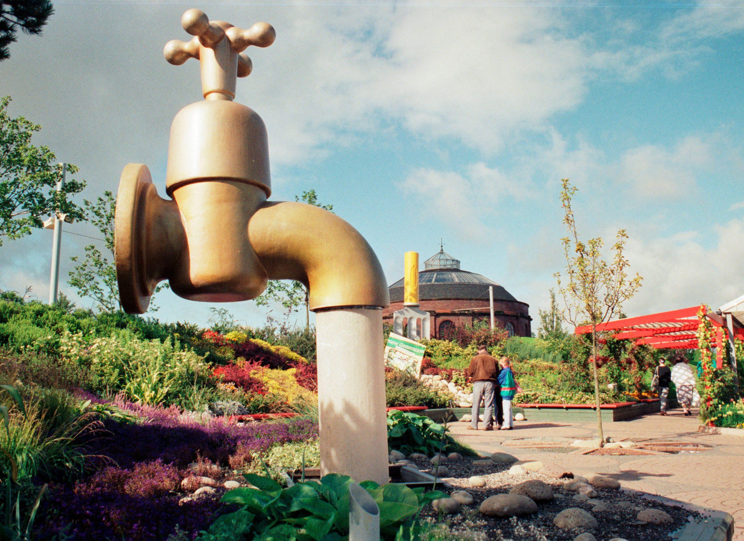 A floating tap sculpture during After the Garden Festival